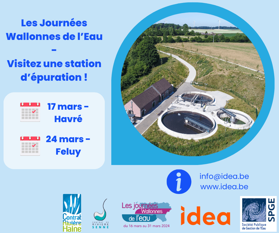 - le dimanche 24 mars : visite de la station d’épuration de Feluy à 9h30, 10h30 et 11h30.