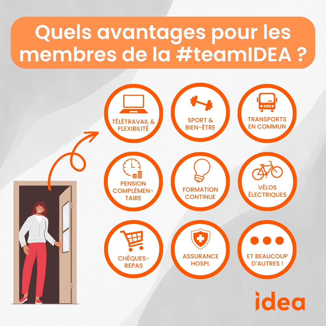 En tant que membre de la #teamIDEA, vous bénéficiez également d’un large éventail de bénéfices, d’avantages en matière de santé et de bien-être, de possibilités de formation, d’avantages sociaux et bien plus encore.