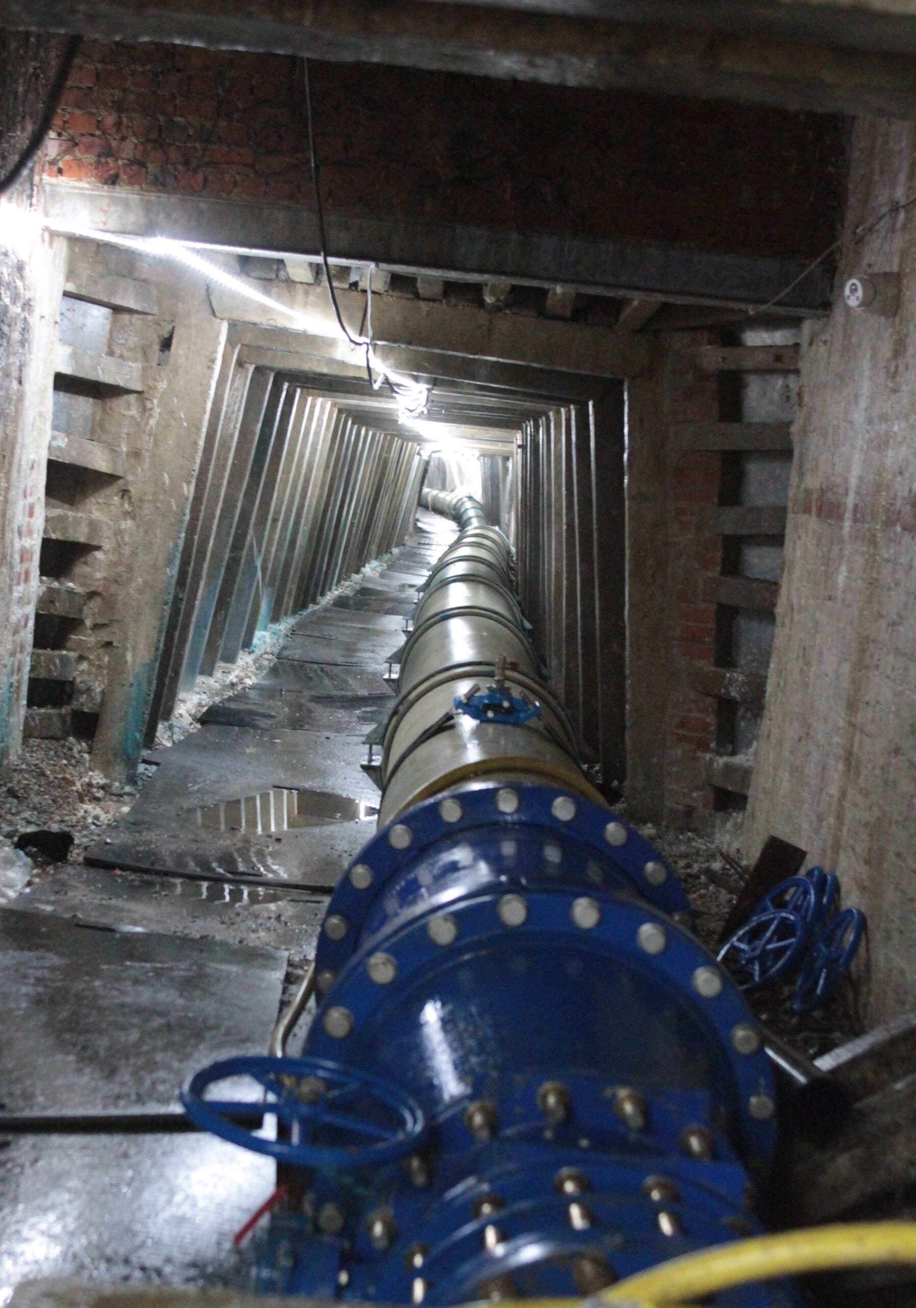 • 1.650 m. de conduite d’exhaure en fonte DN400 entre le pompage de la Scierie situé à la rue des Champs et nos réservoirs du Marais où l’eau est stockée avant son pompage vers les différents utilisateurs ;