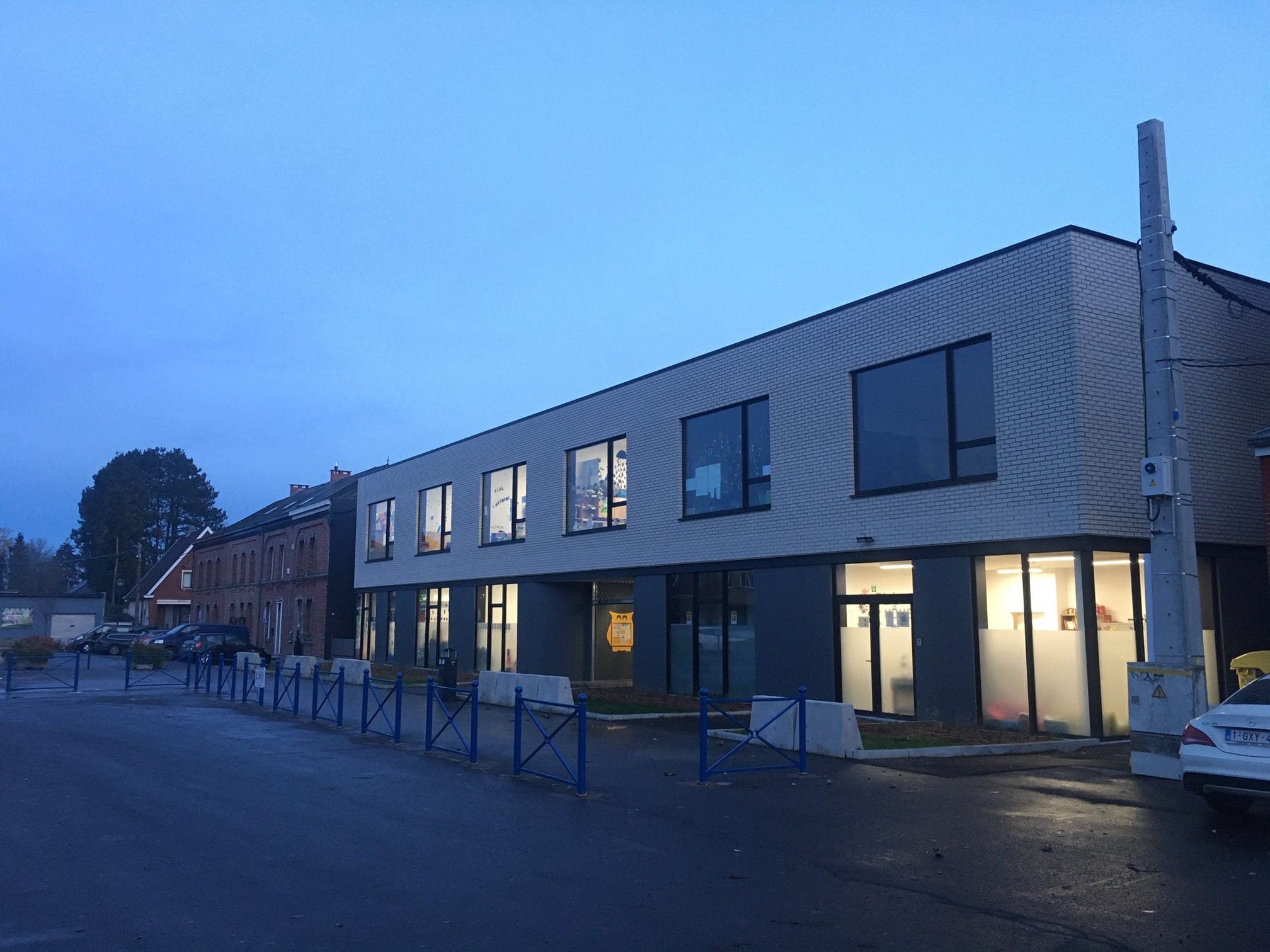 Située au cœur de la place Albert 1er à Godarville, ce nouveau bâtiment de plus de 1.300 m² compte aujourd’hui une section maternelle et primaire. L’entreprise DRUEZ et le bureau d’architecture RESERVOIR A, désignés dans le cadre du marché de conception-construction de l’école, ont également intégré dans ce projet des espaces extérieures aménagés (patio, jardin didactique, cours de récréation, etc.), une bibliothèque ainsi qu’une salle polyvalente pour accueillir une garderie, l’organisation des repas chauds, des fêtes scolaires ou bien encore les activités sportives ou de psychomotricité.