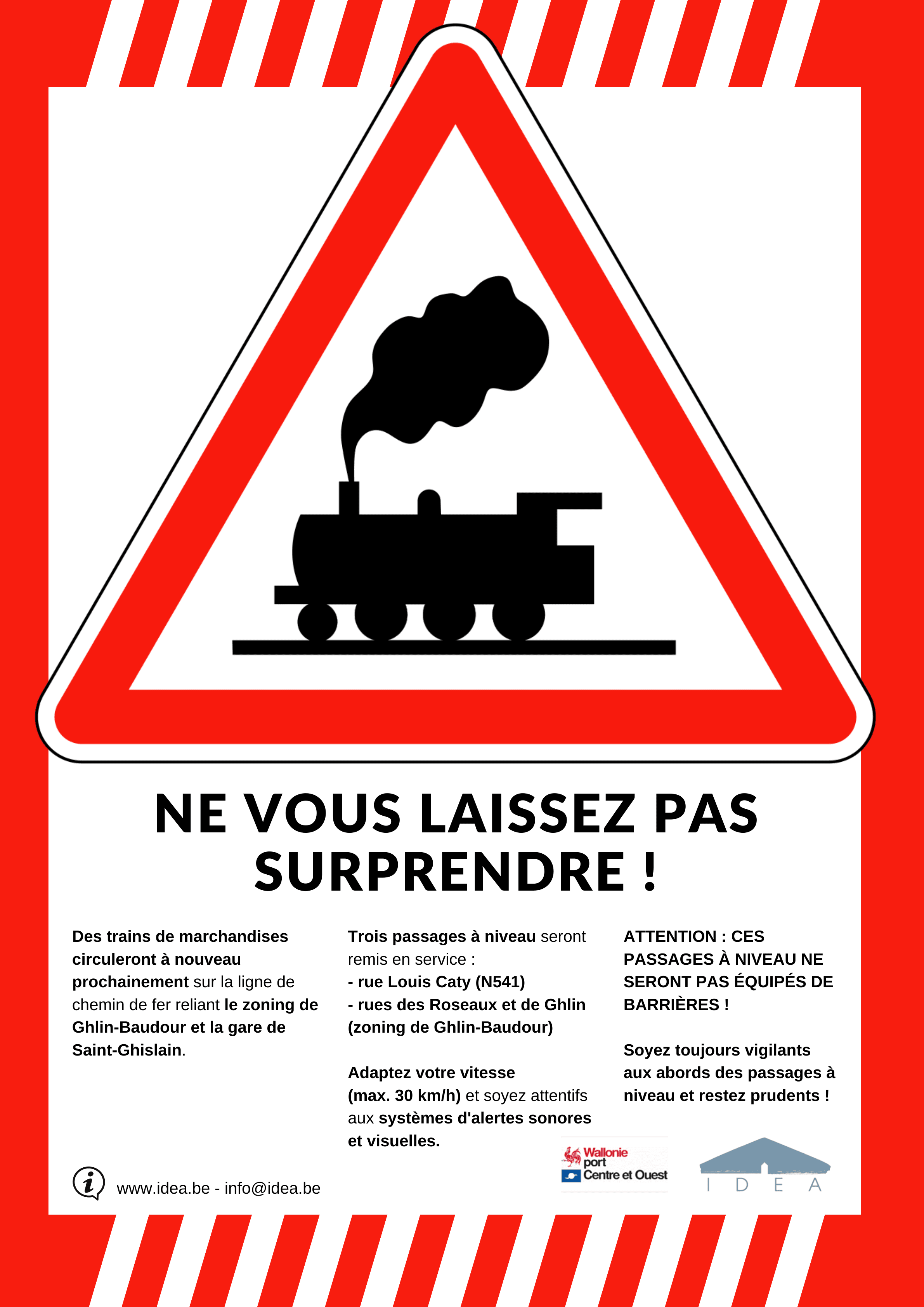 La remise en fonctionnement de la ligne 242 reliant la plate-forme multimodale de Ghlin-Baudour à la gare de Saint-Ghislain nécessitera la remise en fonctionnement de 3 passages à niveaux sur le territoire de Saint-Ghislain, mis à l’arrêt depuis de longues années :